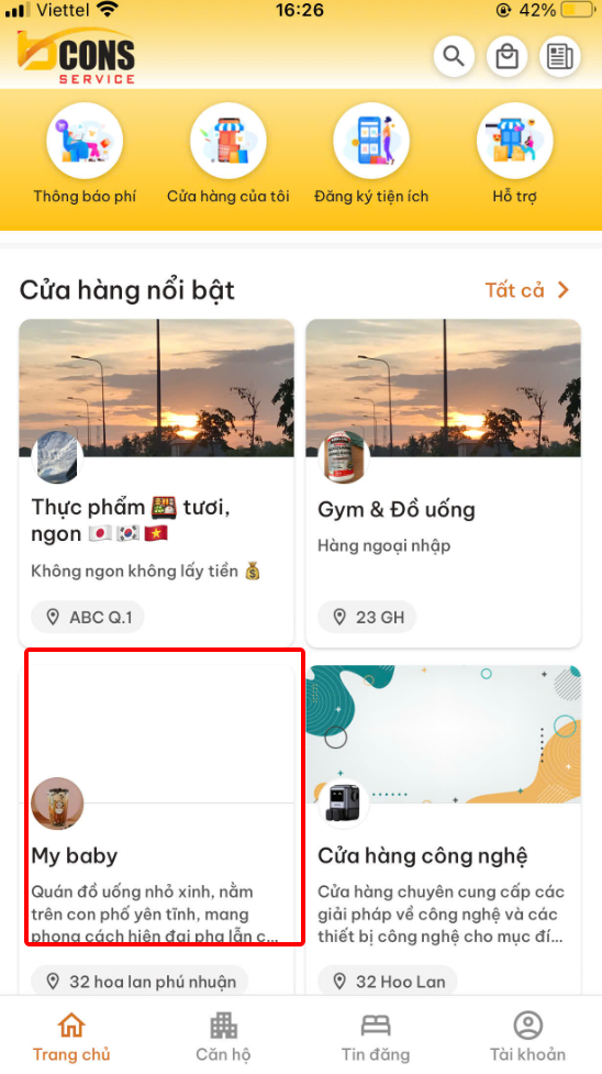 Bước 2: Tại Homepage, chọn cửa hàng muốn mua