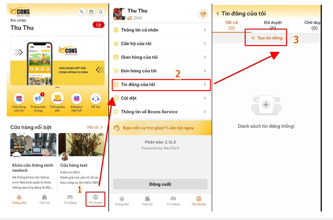 Cách 2: Vô tài khoản > chọn " Tin đăng của tôi " > Tạo tin đăng