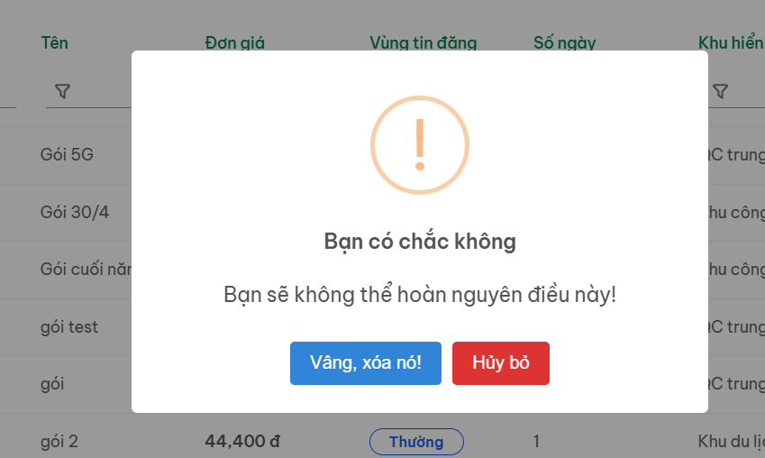 Hủy bỏ: hủy bỏ thao tác xóa, gói không bị xóa